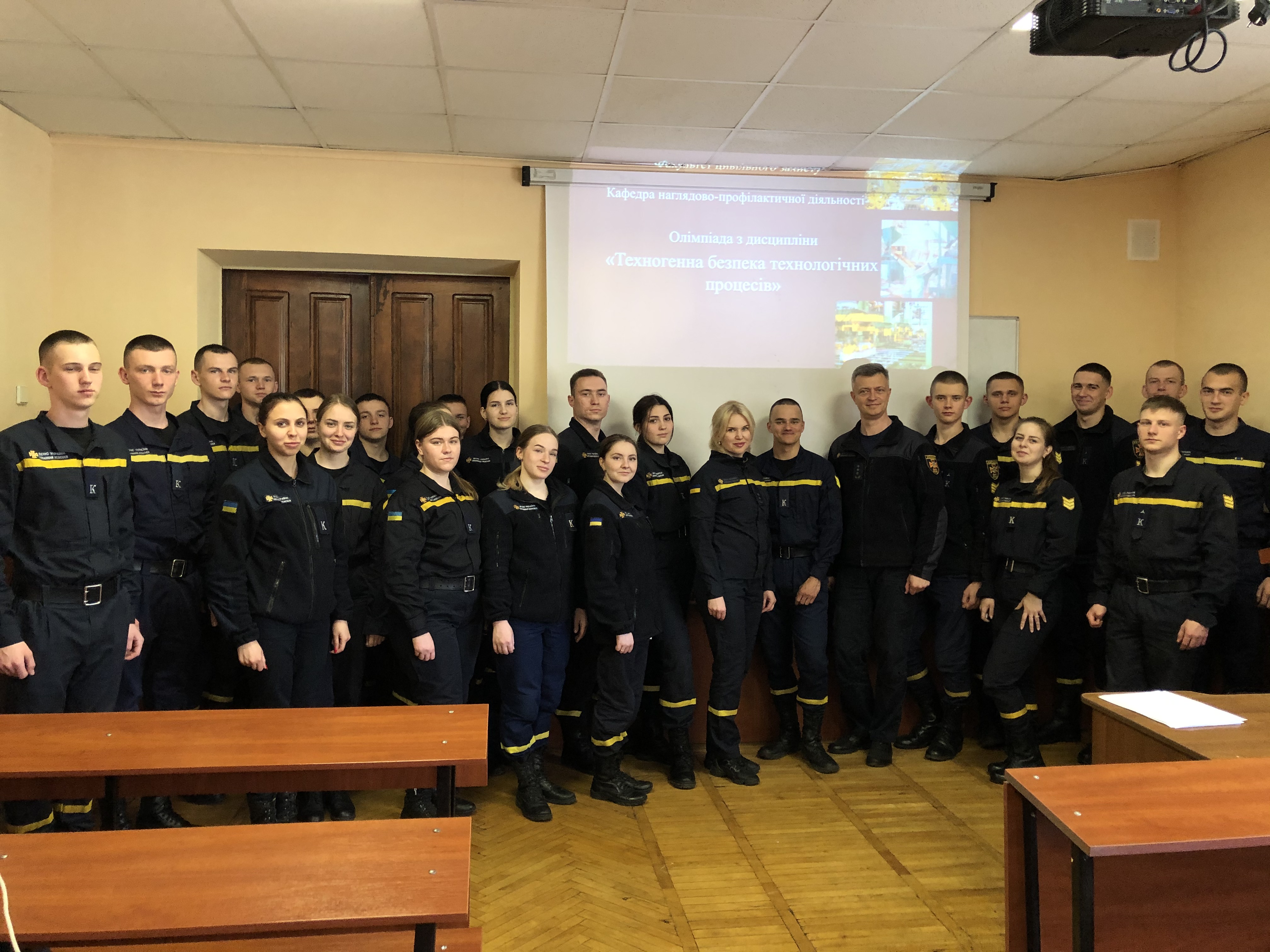 10 травня 2023 року науково-педагогічними працівниками кафедри наглядово-профілактичної діяльності факультету цивільного захисту була проведена олімпіада з дисципліни «Техногенна безпека технологічних поцесів». Олімпіада пройшла за активної участі здобувачів вищої освіти третього курсу факультету цивільного захисту.