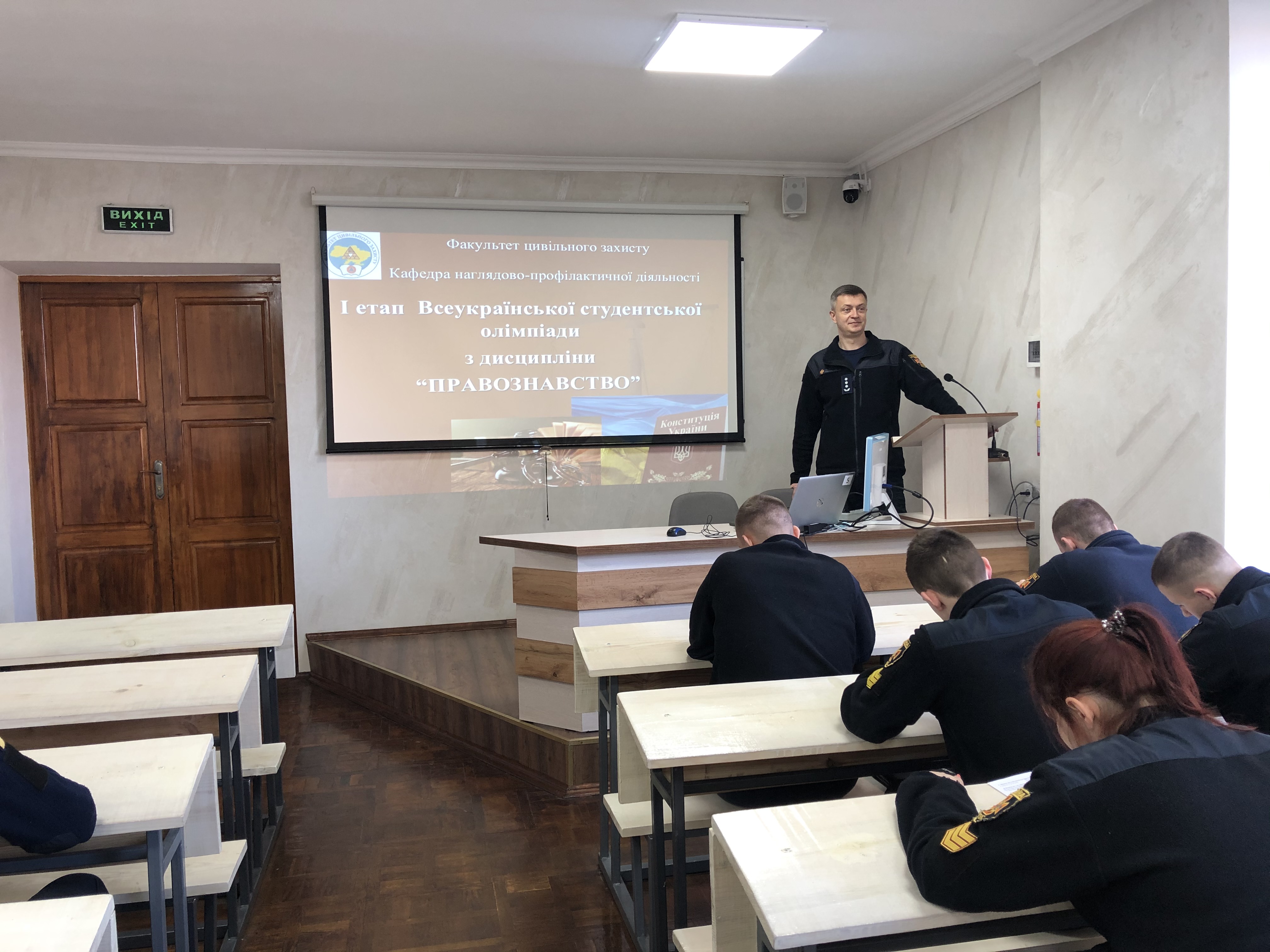 02 березня 2023 року для здобувачів вищої освіти 2-го та 3-го курсів університету, які навчаються за першим (бакалаврським) рівнем вищої освіти за освітньо-професійними програмами «Цивільний захист» та «Радіаційний та хімічний захист» в складі журі (Віталій КАЛЮЖНИЙ, Олександр СЕРГІЄНКО, Юлія БЕЗУГЛА, Олександр ДАНІЛІН) було проведено І-й етап Всеукраїнської студентської олімпіади з дисципліни «Правознавство».